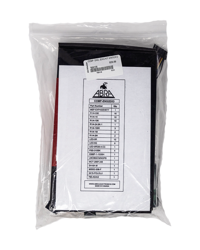 Required kit for Computer Engineering 2DX3. Created by ABRA Electronics. Your instructor can provide a list of kit components.