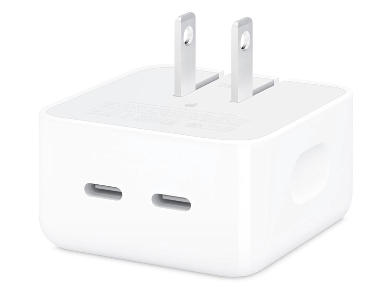 The 35W Dual USB-C Port Compact Power Adapter allows you to charge two devices at the same time, whether you're at home, in the office or on the go. The compact size and folding pins make it easy to pack and store. Apple recommends using it with MacBook Air. You can also use it with iPhone, iPad, Apple Watch and AirPods.