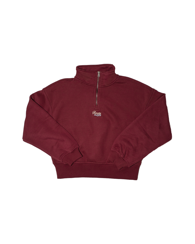 • Embroidered Roots logo below zipper