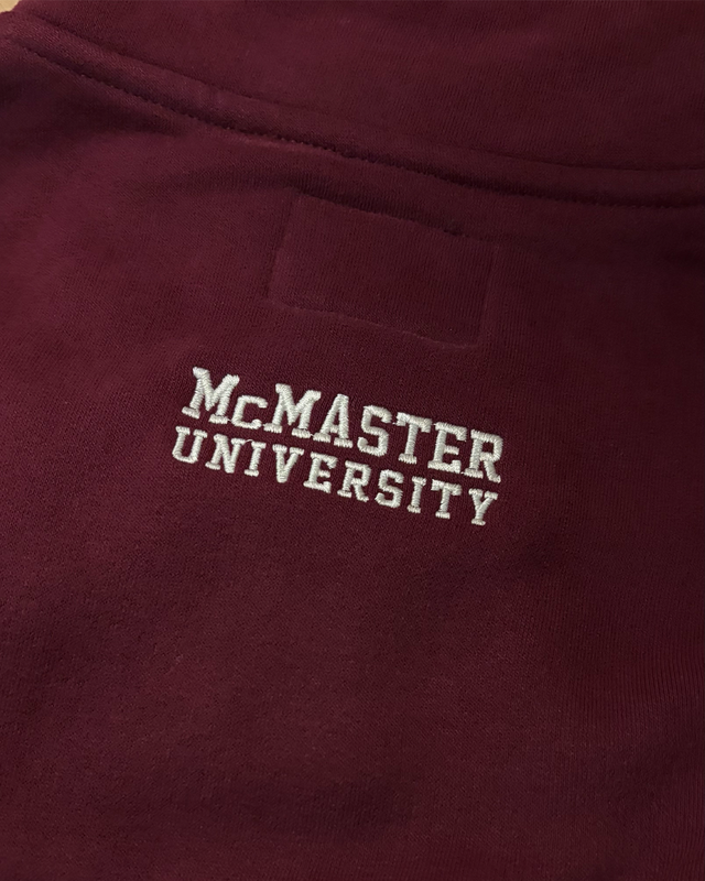 • Embroidered McMater logo centre on back