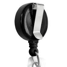 Wear your ID in style! Fashionable retractable ID badge extends to 23". Metal clip on the back enables fastening to apparel. Button snap ID holder can also be used to carry keys. Five colours available.