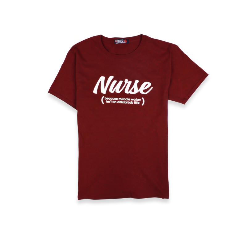 This T-shirt features the fun graphic "Nurse (because Miracle Worker is not an official job description)" screened as a 1 colour print. 100% cotton; available in sizes S-XXL.