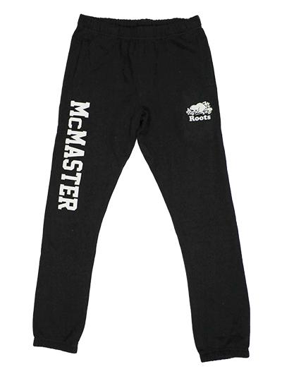 Your favourite Roots sweatpant with original flocked beaver on left hip in white. McMaster down the leg also in velvet flocking.