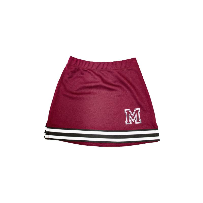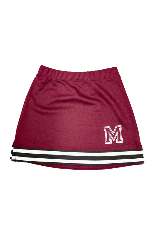 M screen printed in white left leg. 100% polyester double knit , 2-way stretch properties allow for increased mobility. Wicks Moisture, ladies' fit. Flat front waistband with covered elastic at back. Side seam V-notch