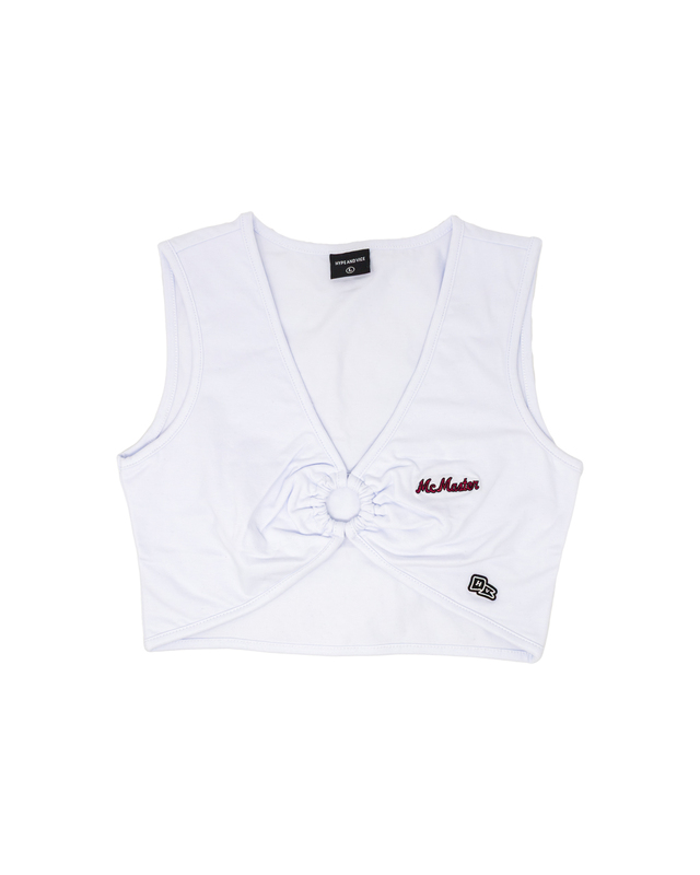 The Ring It Top! This fully lined crop top features a plunging neckline with a ring centerpiece. 95% Cotton, 5% Spandex. Embroidered logo application.